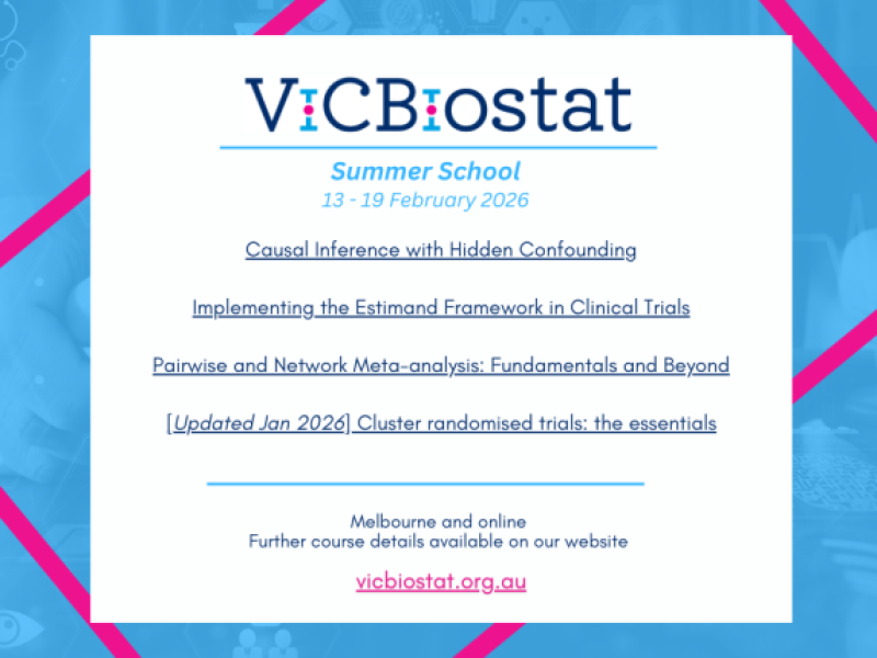 The Victorian Centre for Biostatistics (ViCBiostat) aims to build the Australian biostatistical workforce and future leaders through a program of methodological research embedded in significant collaborative health and medical research.